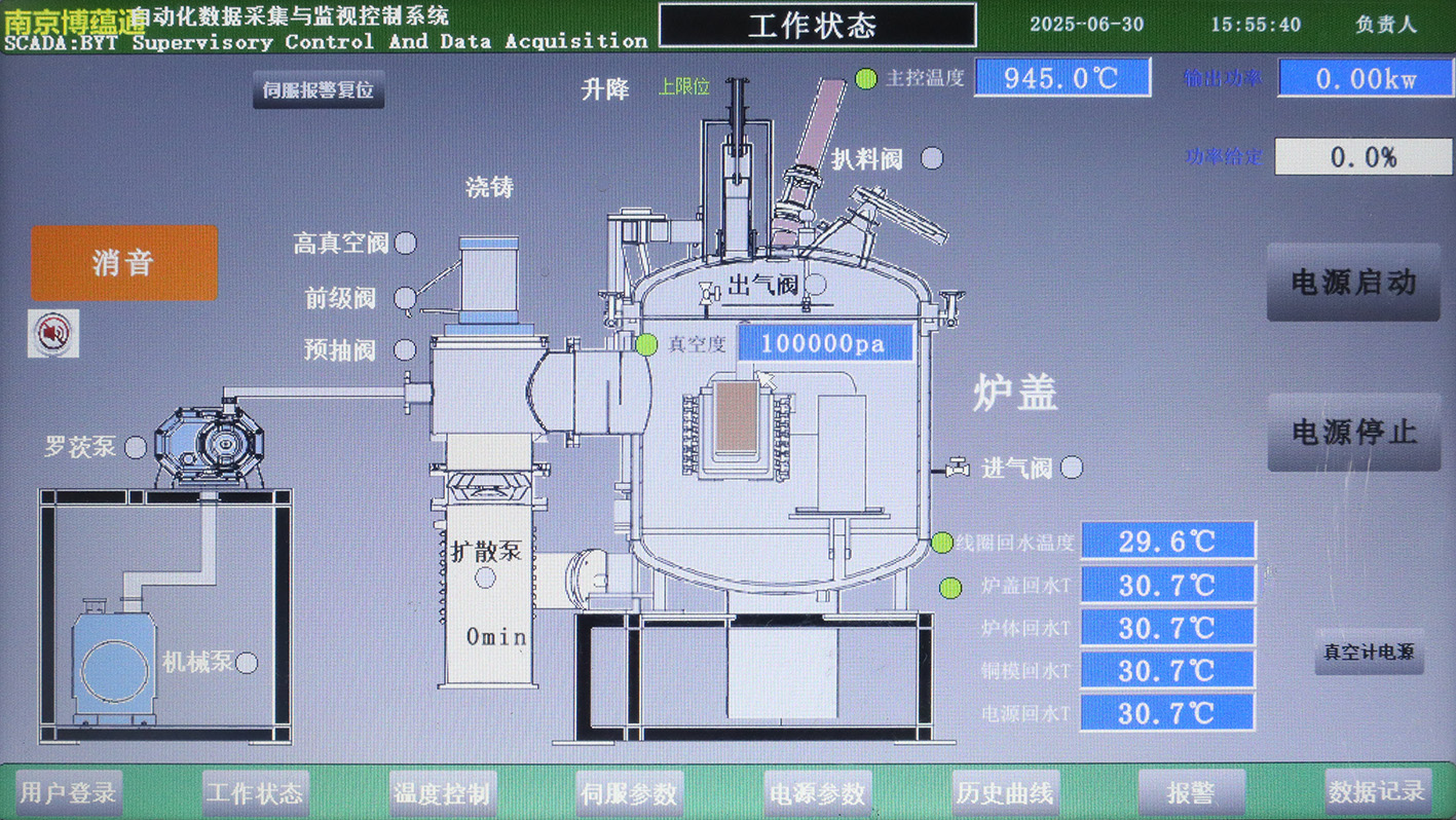 可在软件上控制机械泵、扩散泵、真空阀的启停,可设置并运行工艺曲线,可存储数据并导出数据至U盘 |